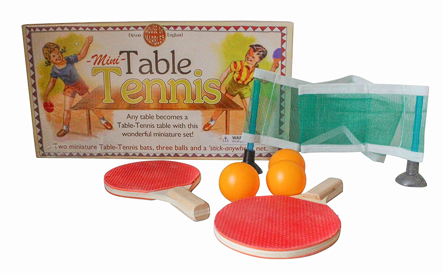 The pongo portable table tennis set transforms virtually any tabletop into an impromptu table tennis court.